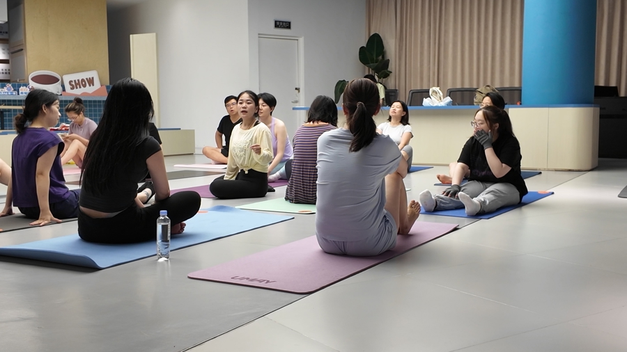 普拉提老师、瑞虹新城住户张慧敏在后生夜校上课。