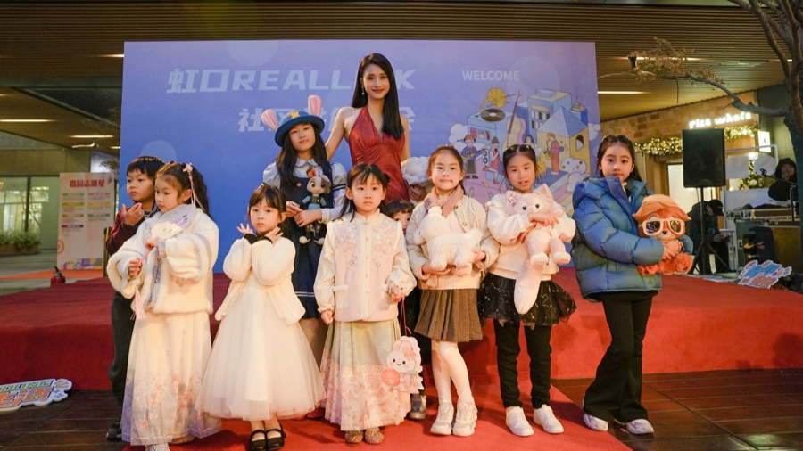 瑞虹新城住户、作事模特曹静与过问亲子好意思育课堂学习的孩子们。